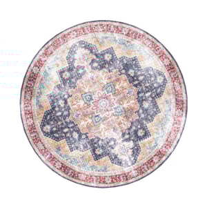 Der runde Vintage-Teppich – Azara Blau Rot ist ein neuer Teppich im klassischen Look, denn der abgenutzte Aufdruck lässt ihn im Vintage-Style erscheinen. Der farbenfrohe Teppich verleiht einem Raum einen frischen und gemütlichen Look. Im Teppich sind verschiedenste Formen und Muster verarbeitet, was ihn verspielt wirken lässt. Durch den Vintage-Look lässt sich der Teppich sehr gut mit unterschiedlichen Materialien und Stoffen kombinieren.